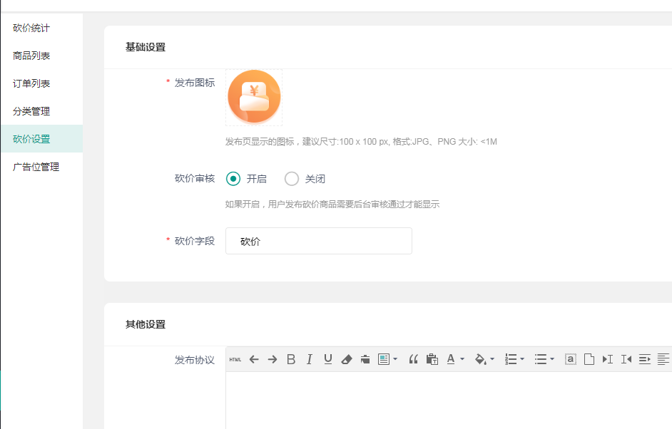 ### 砍价设置  砍价字段自定义,设置内容较简单