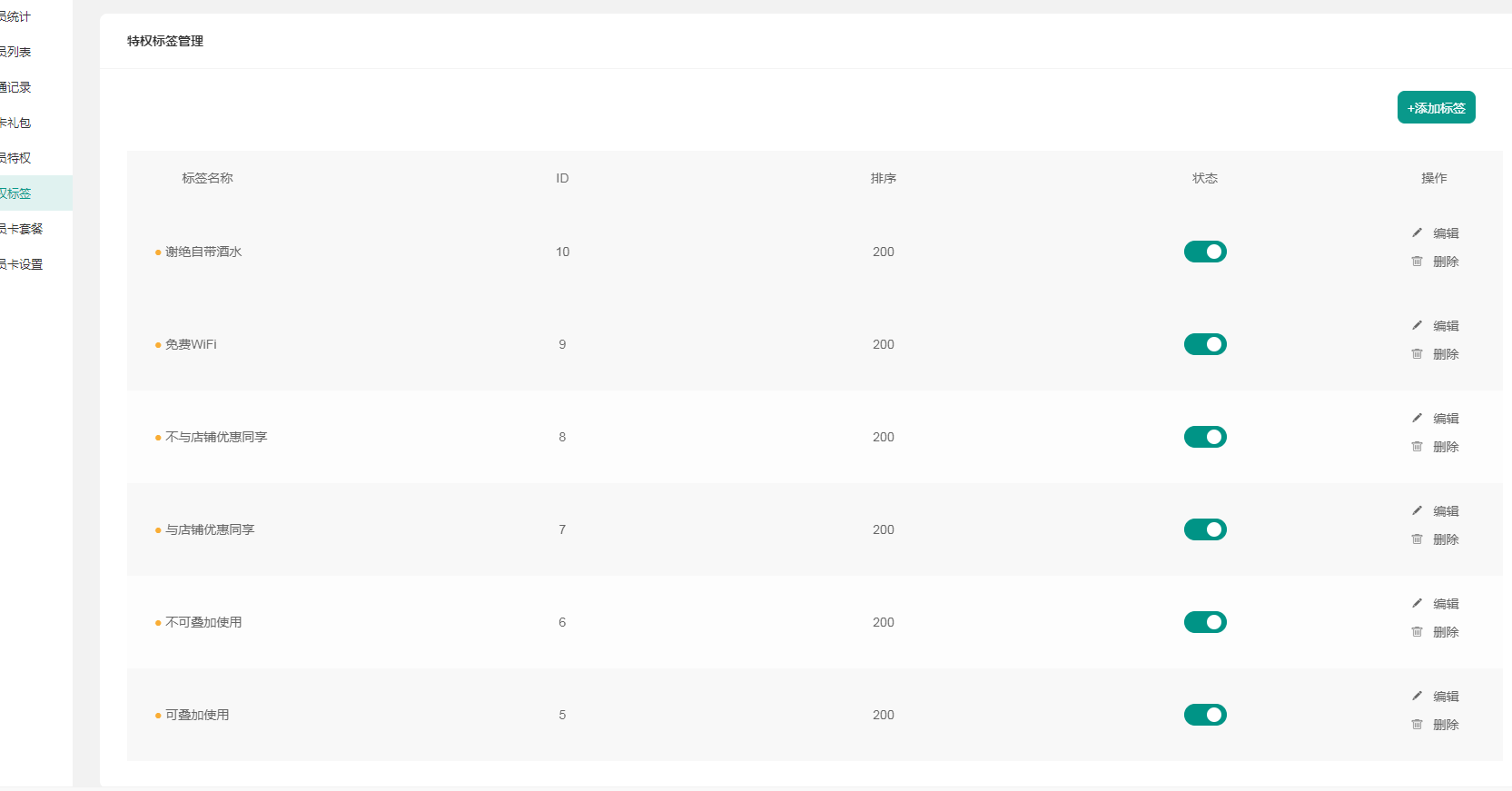 ### 特权标签  标签功能,可编辑删除
