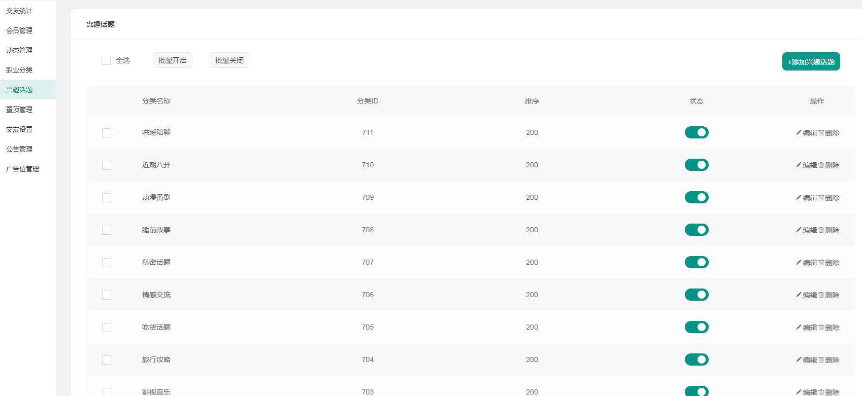 ### 兴趣话题  兴趣话题,类似标签的功能,注册会员的时候选择的