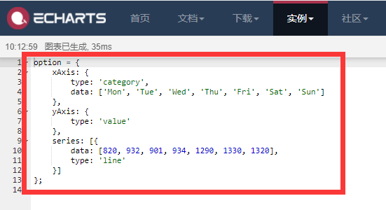 # Echarts图形图表 --- WLN.WIKI支持 在 Markdown 编辑器中插入 Echarts 图表图形,然后在文档页面中显示。 ## 语法 1. ` ```echart` 2. `echart的配置选项` 3. ` ``` ` 你还可以直接点击工具栏中的 快速在文档中生成 echarts 代码块。  ## 示例 ```coffeescript ```echart { xAxis: { type: 'category', data: ['Mon', 'Tue', 'Wed', 'Thu', 'Fri', 'Sat', 'Sun'] }, yAxis: { type: 'value' }, series: [{ data: [820, 932, 901, 934, 1290, 1330, 1320], type: 'line' }] } ``` 上述代码 将会显示如下所示的 Echart 图形: ```echart { xAxis: { type: 'category', data: ['Mon', 'Tue', 'Wed', 'Thu', 'Fri', 'Sat', 'Sun'] }, yAxis: { type: 'value' }, series: [{ data: [820, 932, 901, 934, 1290, 1330, 1320], type: 'line' }] } ``` ## 图表配置项 具体的 Echarts 配置项可以参考 [Echart官方实例](https://echarts.apache.org/examples/zh/index.html)。 例如,在 Echarts 的官方实例中,其一个图形的基本配置项如下图所示:  我们需要的配置项内容为`{}`及其之间的内容: ```json { xAxis: { type: 'category', data: ['Mon', 'Tue', 'Wed', 'Thu', 'Fri', 'Sat', 'Sun'] }, yAxis: { type: 'value' }, series: [{ data: [820, 932, 901, 934, 1290, 1330, 1320], type: 'line' }] } ``` ### 切记两点: 1. 务必按照 Echarts 官方实例的配置项文件进行修改。 2. 配置项末尾一定不要包含`;`分号。 ---