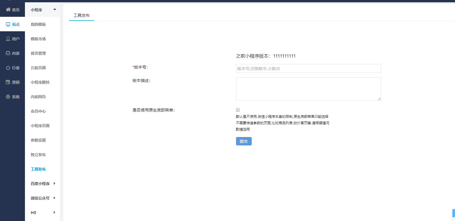 ### 工具发布 工具发布类似于微擎发布,提交代码到小程序后台。选择体验 -->提交审核 -->发布 操作全部在小程序后台操作