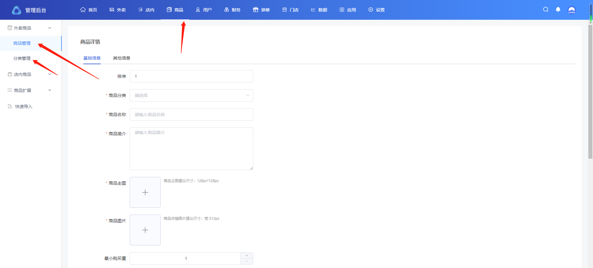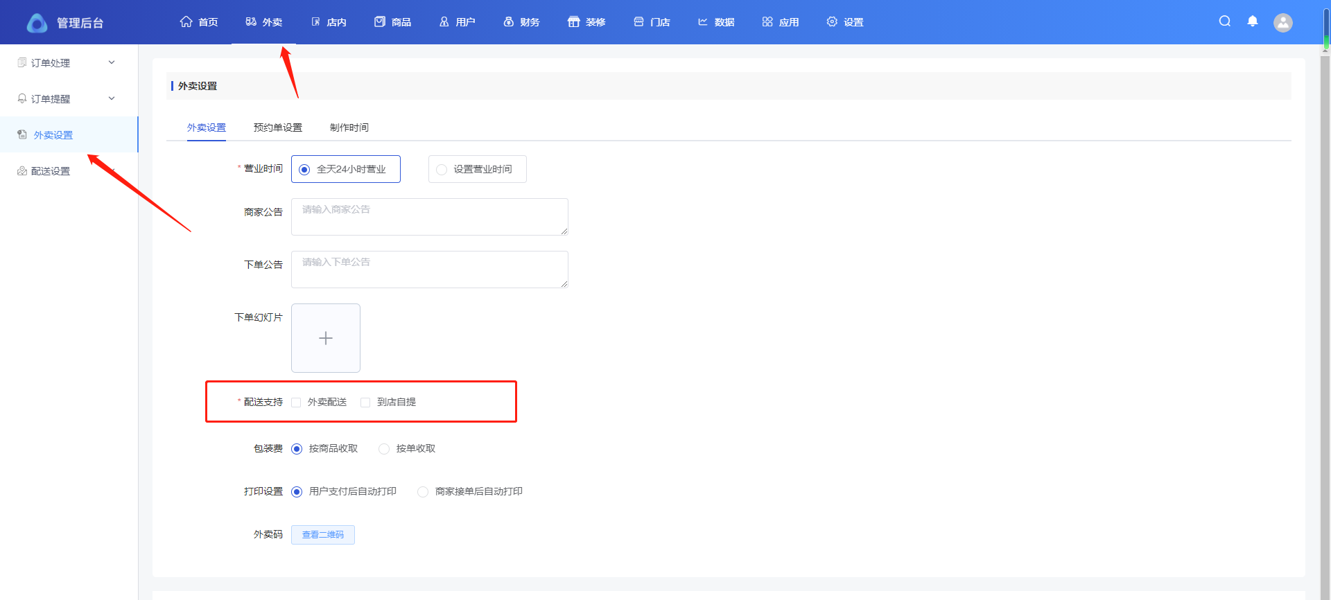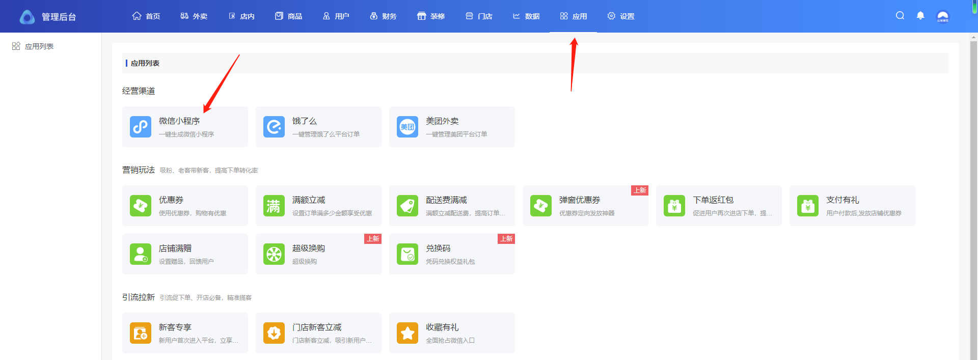 ## 如何发布微信小程序 1.先配置微信程序基础信息 路径:应用-微信小程序-基础信息   **2. 配置平台信息 注意:腾讯地图key必须按照要求申请**, 路径:设置-基础设置  3.设置商户信息 提示:门店下单不显示内容或价格显示错误,一般都是商户信息没有设置好 路径:首页-商户信息  4.设置外卖设置 至少开启一种配送支持才能下单 主店路径:外卖-外卖设置  子门店路径:子门店管理后台-订单-订单设置   5.设置装修页 不想自己设置的话,不用添加装修页,直接预览小程序会自动生成默认模板哦 路径:装修(个人中心和首页都需要添加一个)  注意:首页装修页要设置一下底部导航,不设置首页链接的话,底部就没有导航哦  6. 添加商品和分类 如后台没有商品,点单页会无法正常加载,注意:先添加商品分类,完善商品规格、属性、加料、单位等信息,再开始添加商品 路径:商品-外卖商品  注意:添加商品时,先保存好基础信息再保存其他信息,这两个必须要分开保存  7.上传小程序版本 路径:应用-微信小程序-上传小程序  ## 微信小程序公众平台配置 配置小程序服务器域名:将您的后台域名配置到五个合法域名里面;将腾讯地图域名“https://apis.map.qq.com”配置到第一个“request合法域名”里面 路径:开发-开发管理-开发设置-服务器域名  2.上传小程序版本提交审核 路径:管理-版本管理  ## 等待小程序审核通过之后,就可以发布运营啦!