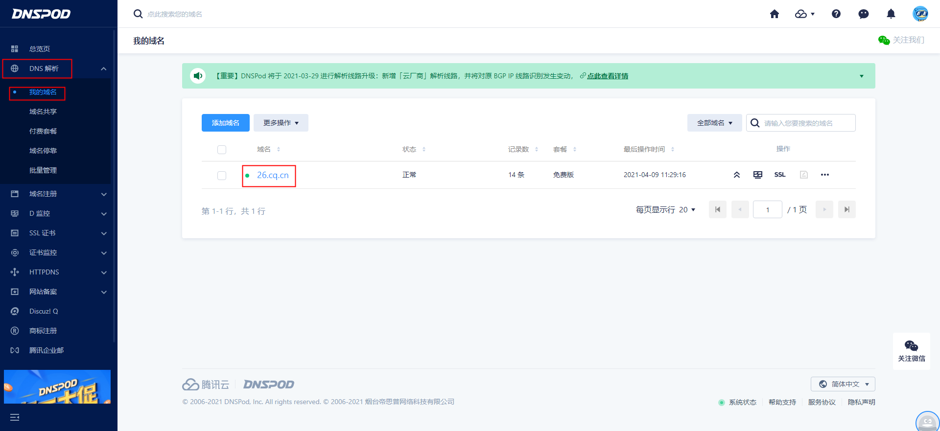 域名分配DNSPod