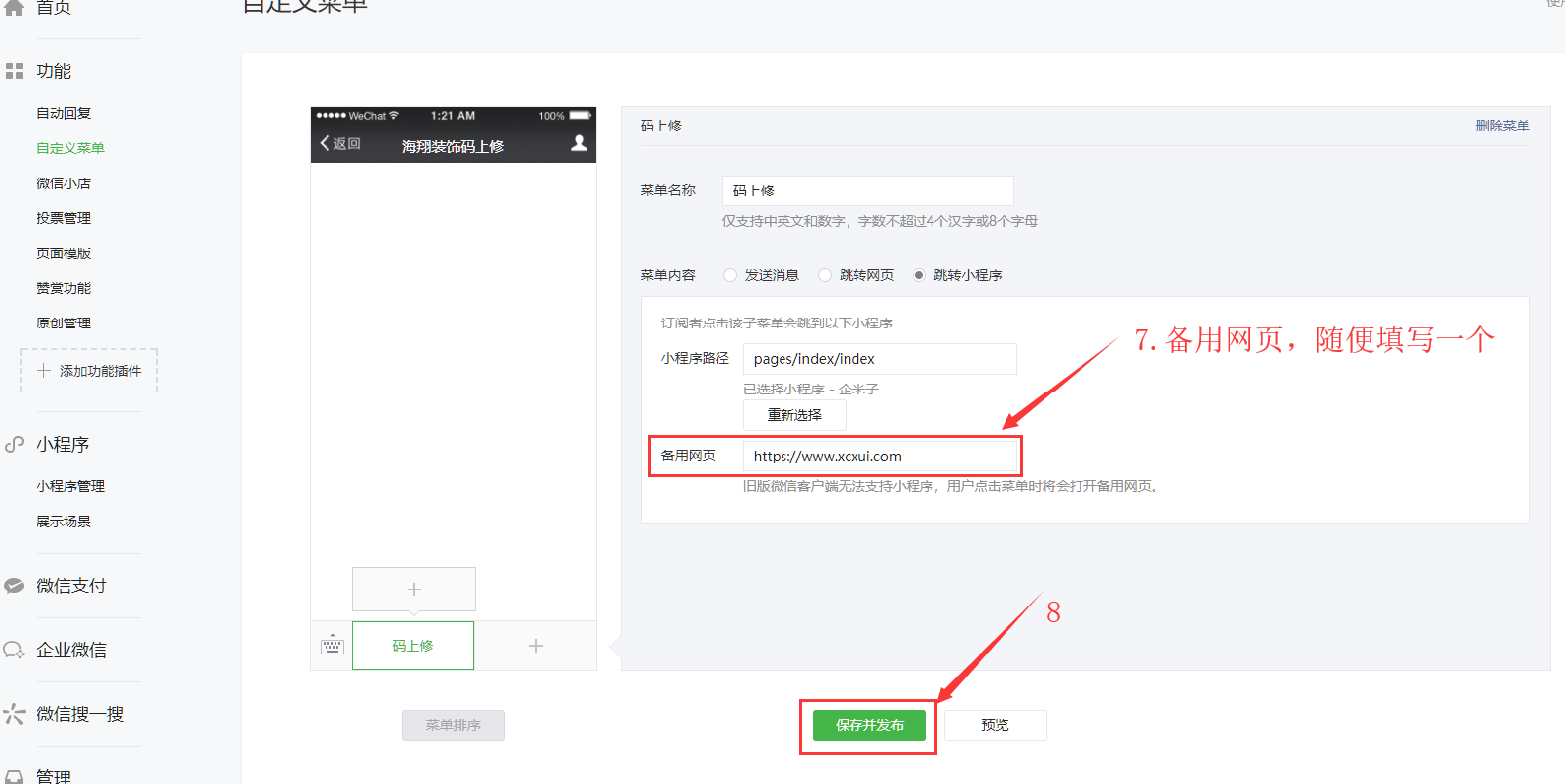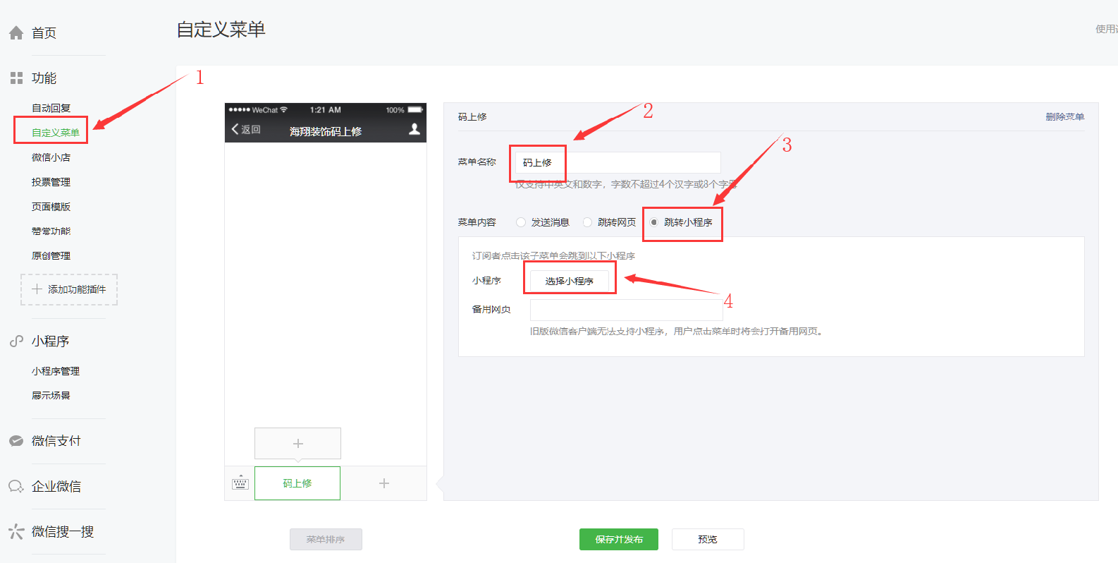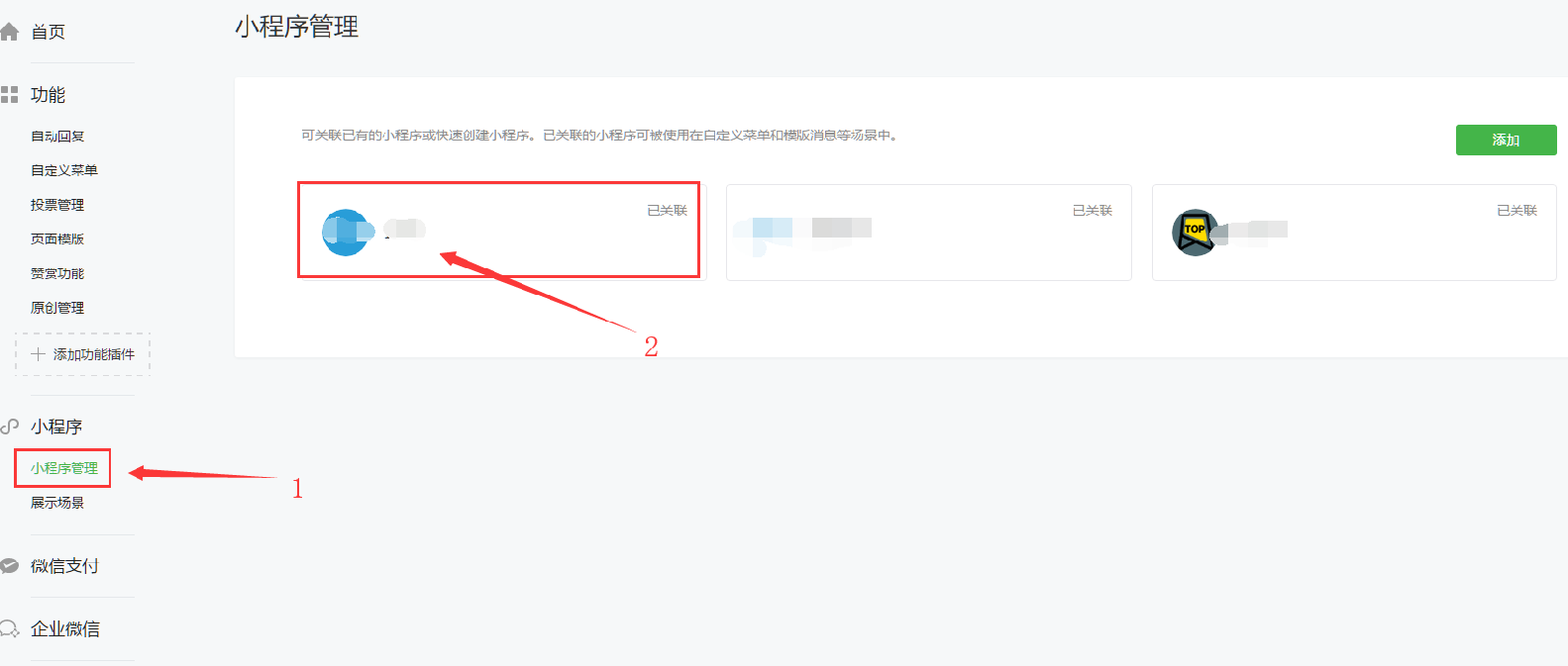 # 小程序绑定公众号教程 ## 第一步.用公众号账号登录微信公众平台https://mp.weixin.qq.com (登录过程,需要管理员微信APP扫码)  ## 第二歩.在小程序管理页面中查询小程序账号是否关联公众号,下图显示小程序已经关联,表示关联成功,如果没有关联,请根据第三步操作进行操作  ## 第三步,选择添加——关联小程序,扫码确认,输入关联小程序的APPID,点击下一步保存即可    ## 第四步.设置公众号底部设置跳转菜单栏,设置公众号菜单时候,菜单内容选择小程序