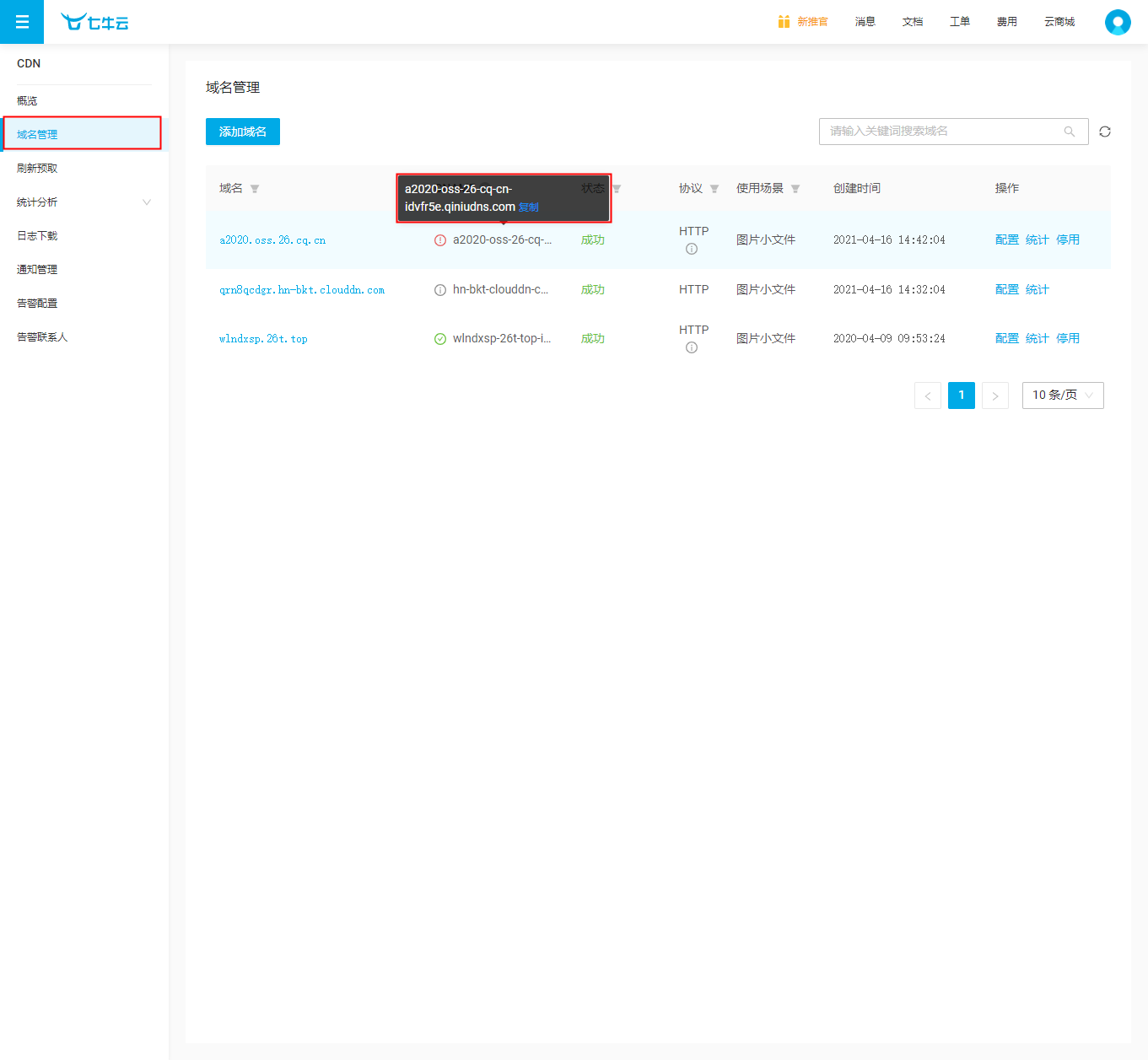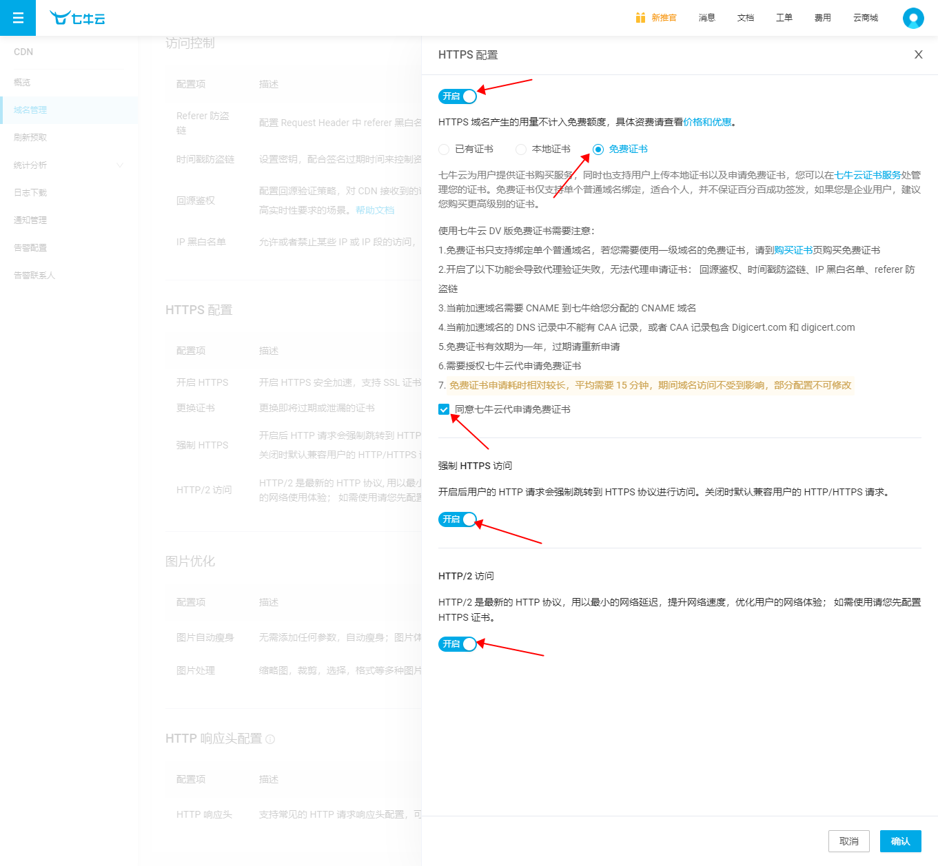 ### 一、对象储存账号认证申请 ==注:我司产品默认推荐对接七牛云对象储存== #### 1.首先进入七牛云官网https://www.qiniu.com/点击右上角立即注册,按照要求注册账号   #### 2.登录七牛云账号,点击个人中心,完成企业认证    ### 二、OSS的创建及SSL部署 #### 1.点击所有产品,进入对象储存kdo  点击空间管理,新建空间,填写空间名字,选择华南区域,访问控制选择公开  #### 2.域名设置 ==点击域名,进入绑定域名,(注:域名需要自行提供,并且需要备案)==   #### 3.别名(CNAME)配置 回到七牛云主页,选择CDN  域名管理,点击别名(CNAME)复制出现的记录值,提供给未来鸟售后客服。  待未来鸟售后服人员添加完毕之后,CNMAE配置完成 #### 4.待域名配置完成生效后,点击配置,进入HTTPS配置  配置信息一般在20分钟左右处理完成  #### 5.获取七牛云秘钥,填写到获客星球数字官网管理后台  进入系统,远程附件,选择七牛云存储,填写相对应的信息,保存即可。