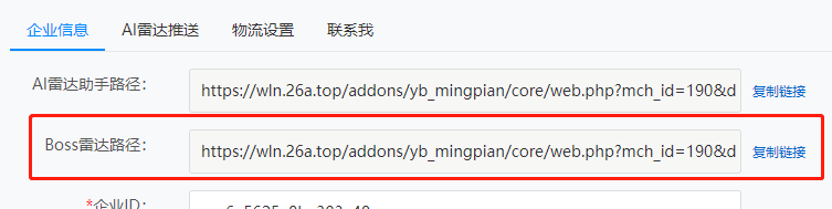 ### 创建、配置Boss雷达 #### 1)、boss雷达和AI雷达的配置其他地方都一样,只有“工作应用主页”的路径不一样。   #### 2)、另外Boss雷达只需配置一下图中的三个参数即可。此三个参数的配置请参照 “2、配置AI雷达并配置”的教程。