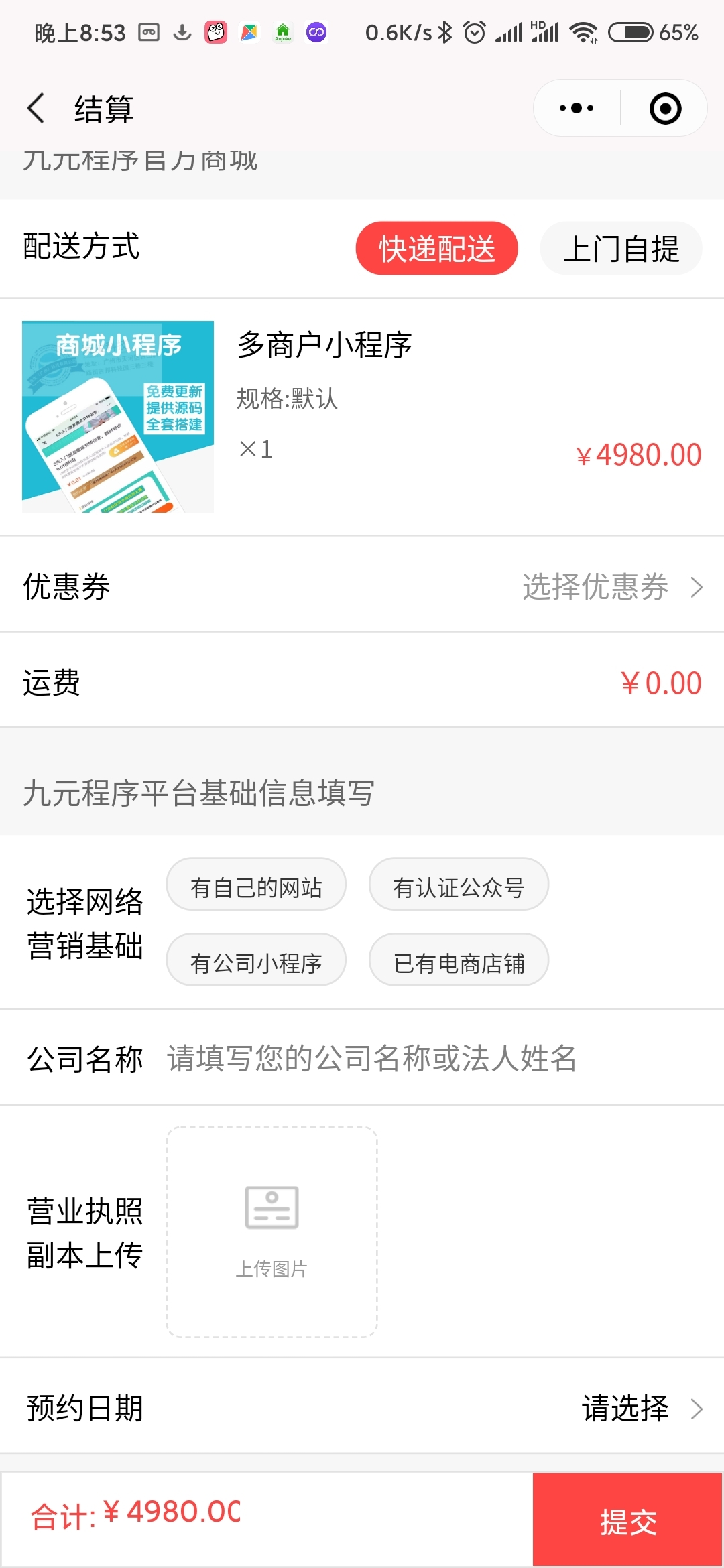 单商户小程序