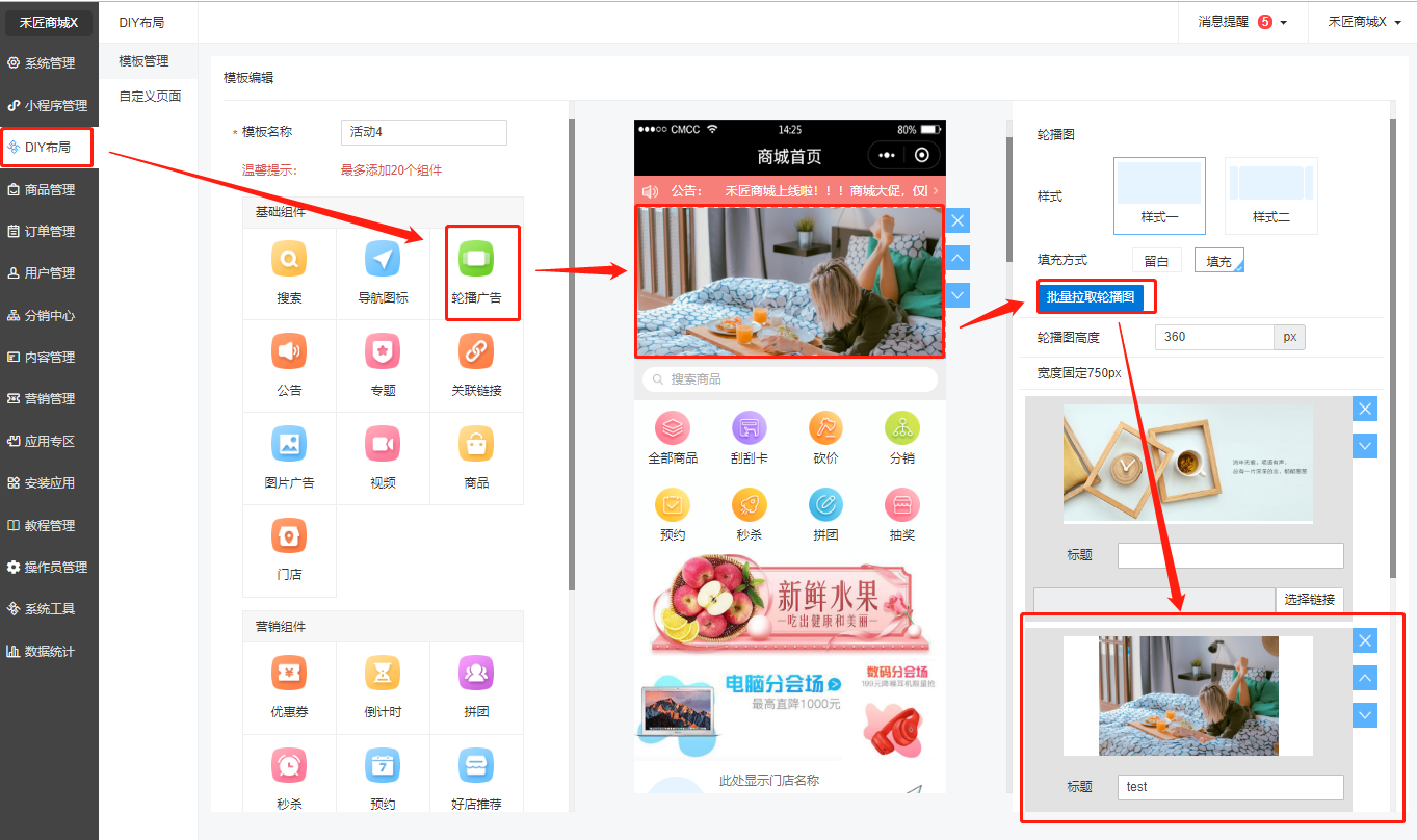 ### 轮播图 #### 请看配置的位置:  #### 小程序页面链接作用 答:用于点击跳转页面  #### 流程:  #### 支持的跳转链接
