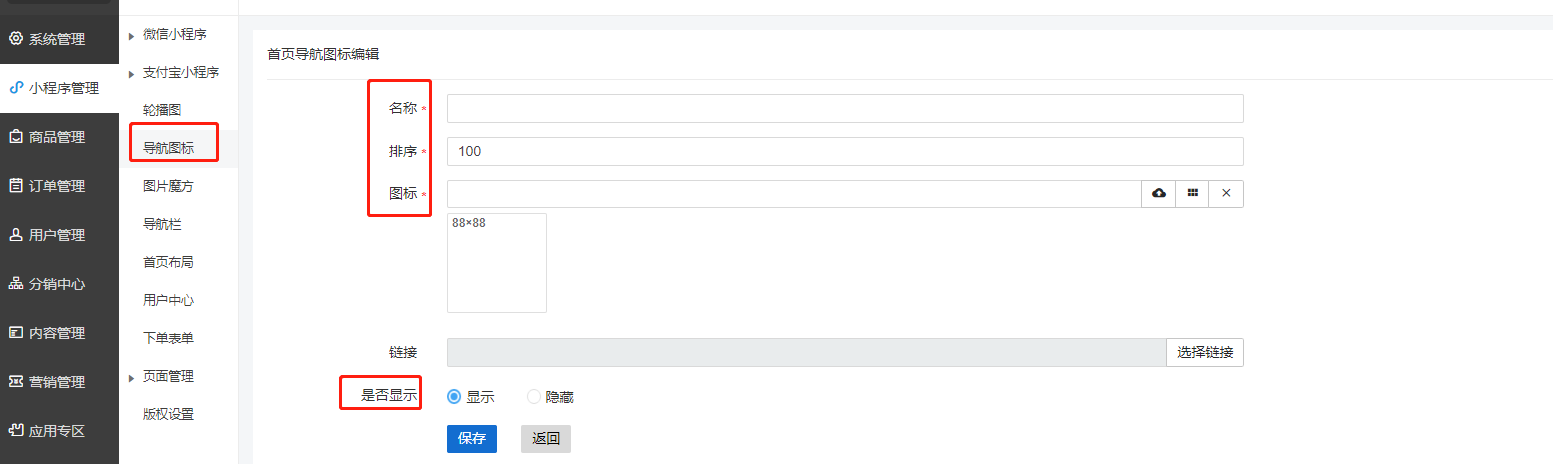 ### 导航图标 #### 请看配置的位置:  #### 流程:  #### 排序说明 - 数字越小,排在前面 #### 作用: