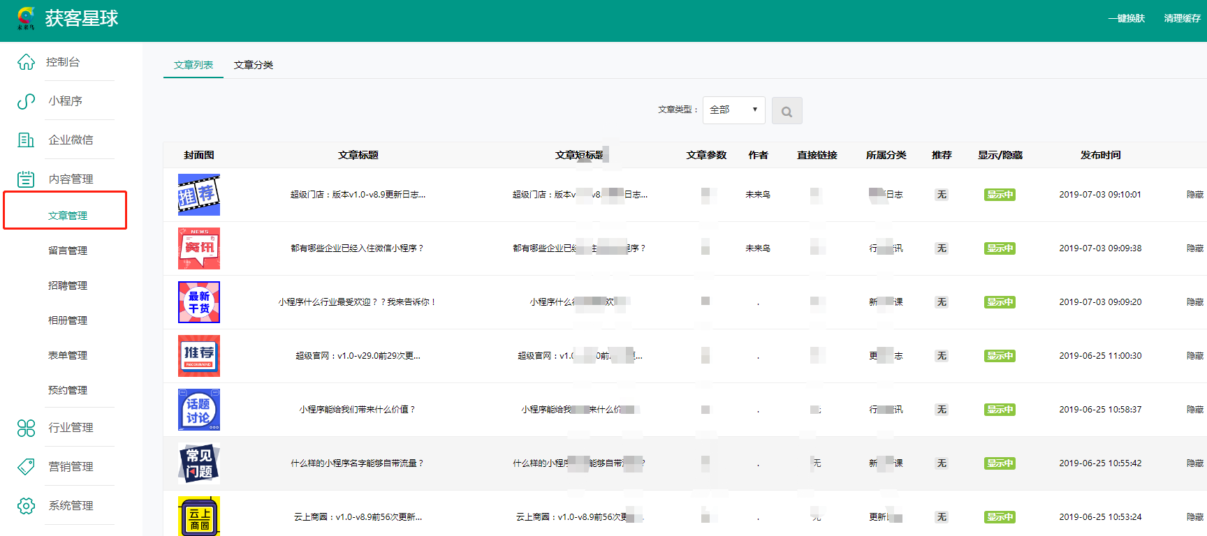 ### 文章管理  先添加“文章分类”,后添加文章。 显示所有的文章信息。